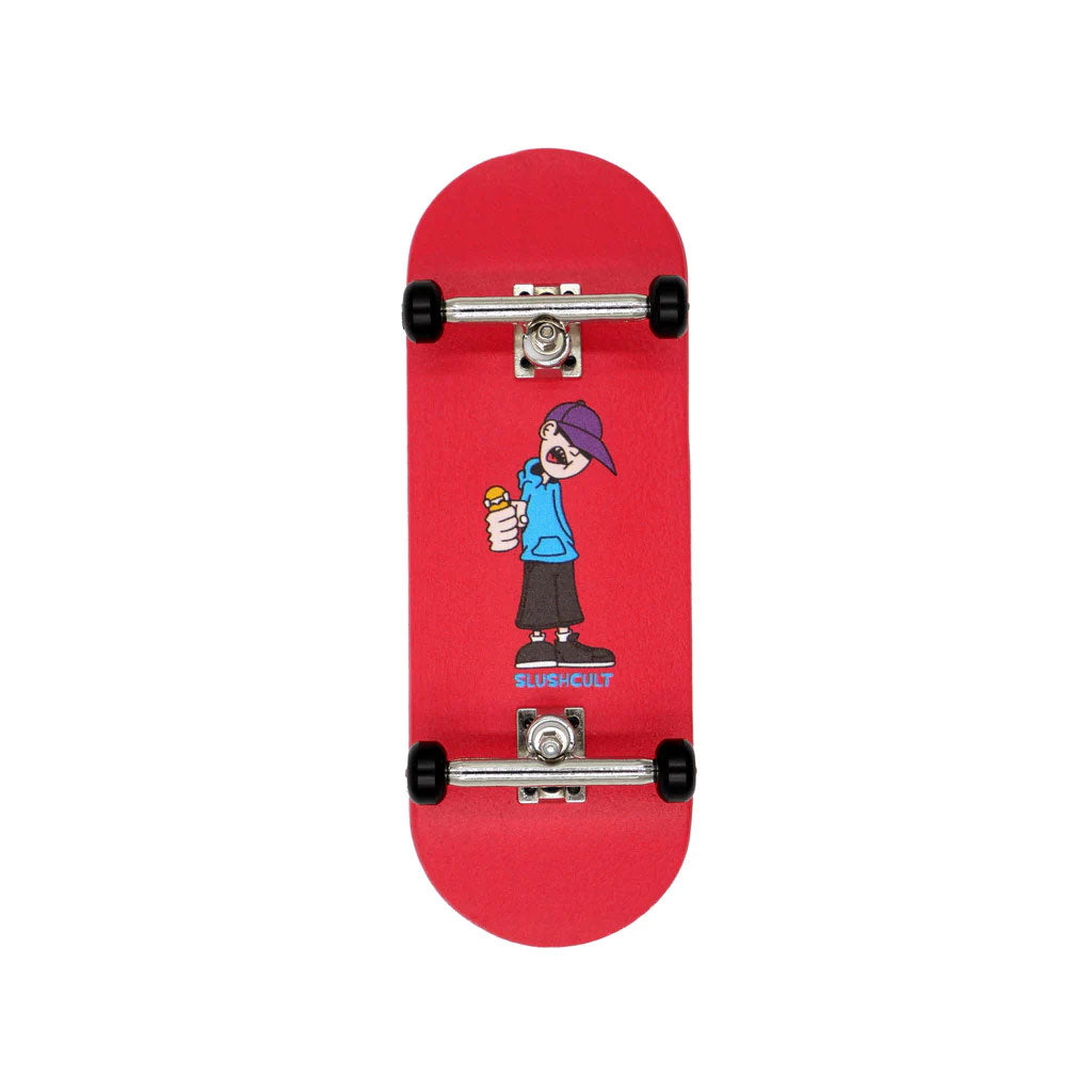 Our goal was to produce a fingerboard of pro level quality but at a mass production price. Luckily, we were able to find a factory who was willing to listen and work with us to make something we are very proud of. The Grom Series features a medium concave and medium kick on a twin tail popsicle shape. The graphics are printed using a new UV printing method that will wear away similar to a screen-printed deck over time. They come pre-assembled in the box and still allow the customer to get creative by doing their own grip job with the two sheets provided. Each complete is set up with single axle metal trucks and CNC polyurethane wheels with bearings. Ultimately, this is a way to proudly join our community.
