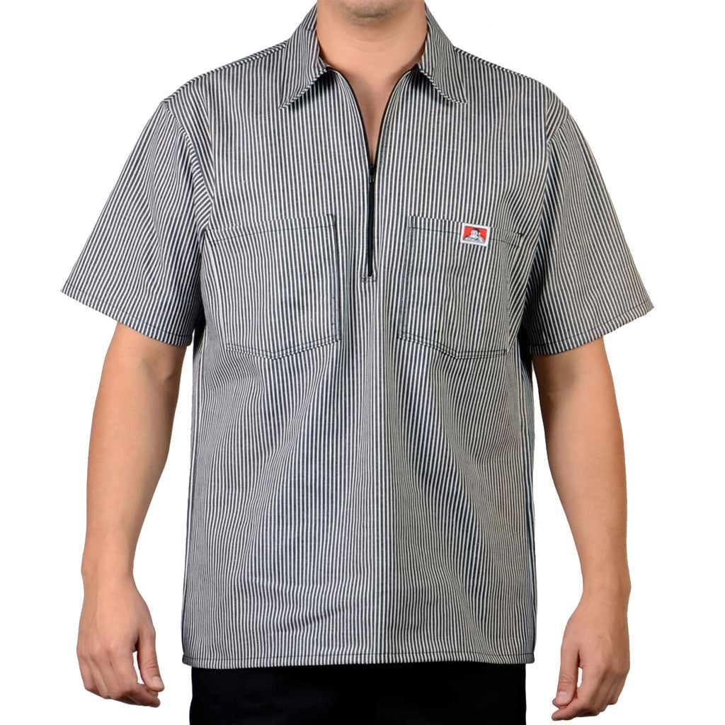 Get the job done in style and comfort with our Ben Davis Half Zip Striped Work Shirt. Crafted from durable materials that are built to last, this shirt features two convenient chest pockets and a pencil pouch to store your essential tools. The unique zippered placket adds a touch of modern style, while also providing versatility to help regulate your body temperature throughout the day. Whether you're working hard on the job or simply enjoying your weekend, this work shirt has got you covered.