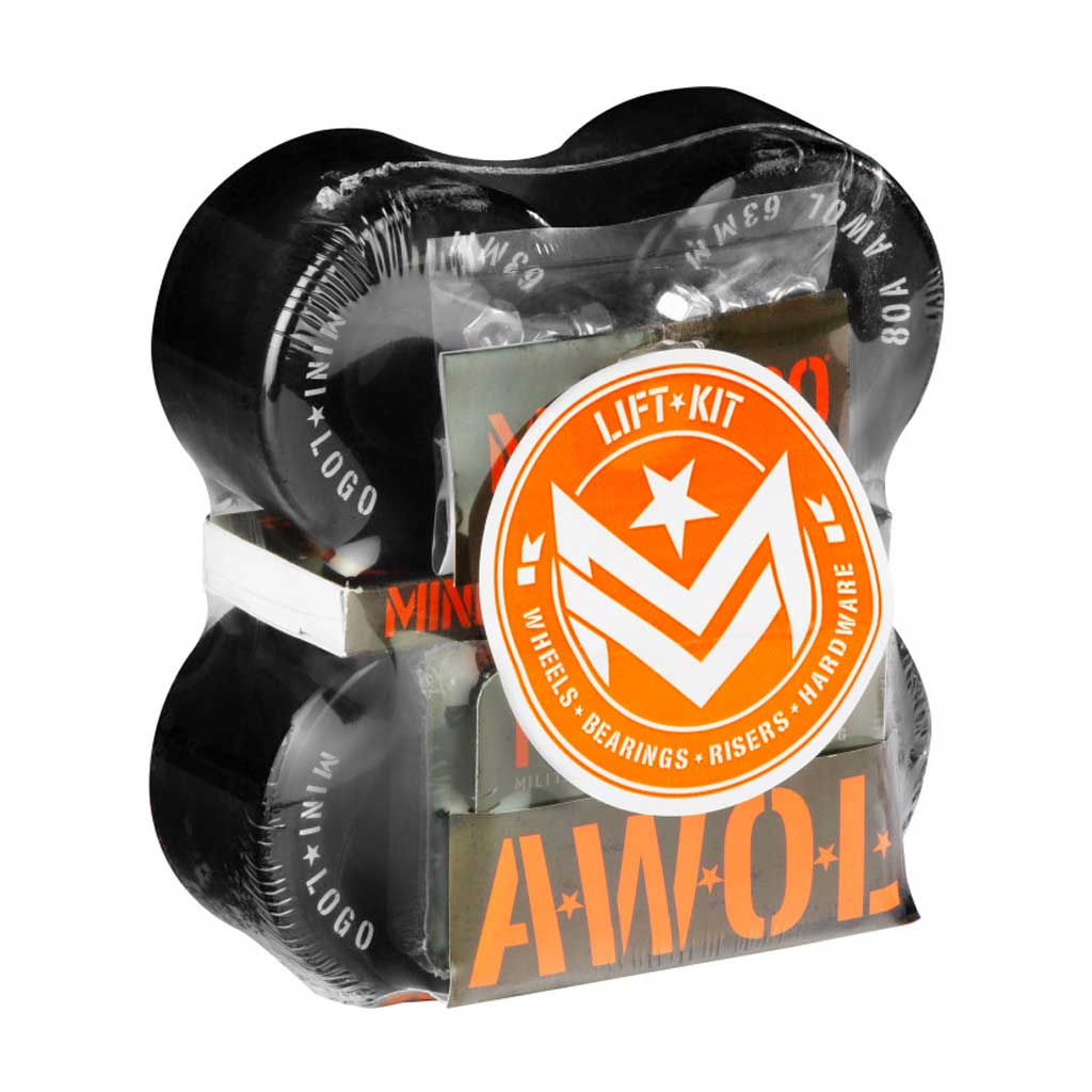 - 63mm x 80a AWOL Wheels + ML Bearings + .50" ML Rigid Riser Pads + 1.50" ML Hardware.