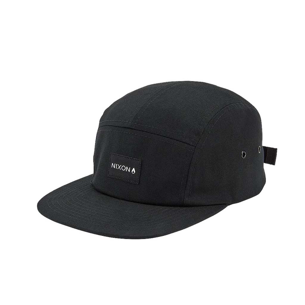 Cotton classic jockey strapback cap. Metal eyelets. Woven logo label detail. Snap buckle closure.