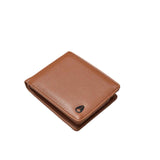 Vegan leather wallet with embossed interior. Features easy access currency sleeve, mesh ID window, and custom metal logo rivet at front.