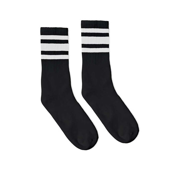 One of SOCCO's top sellers, black with white stripe socks feel at home on the streets or with your rented tuxedo. You're showing them who's boss, in a timeless, comfortable fashion. Available in crew or knee high.