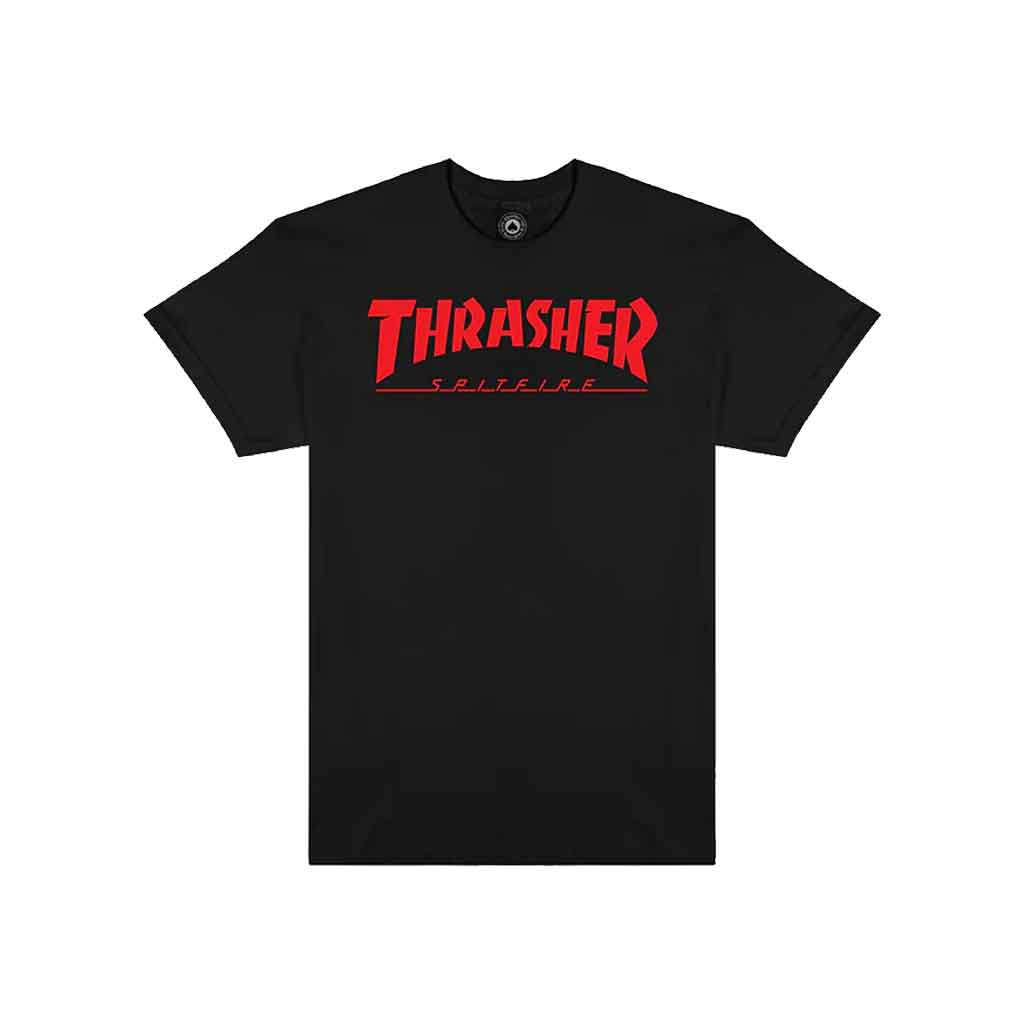 Standard fit T-shirt woven from cotton, finished with Thrasher x Spitfire artwork at center-chest, large print on back, and sewn-in label at inner neck.